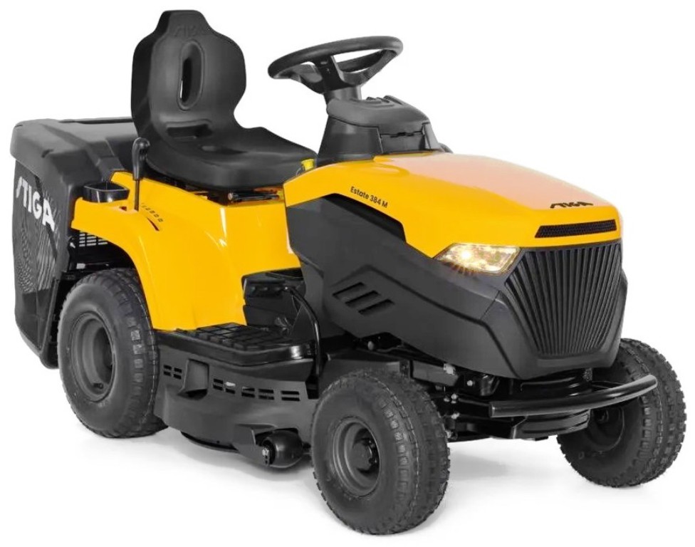 o 80mm, and a convenient electromagnetic blade engagement clutch that is button operated. The Estate 384M boasts a 200-litre rear grass collector and can also be used with the STIGA Multiclip function for mulching.